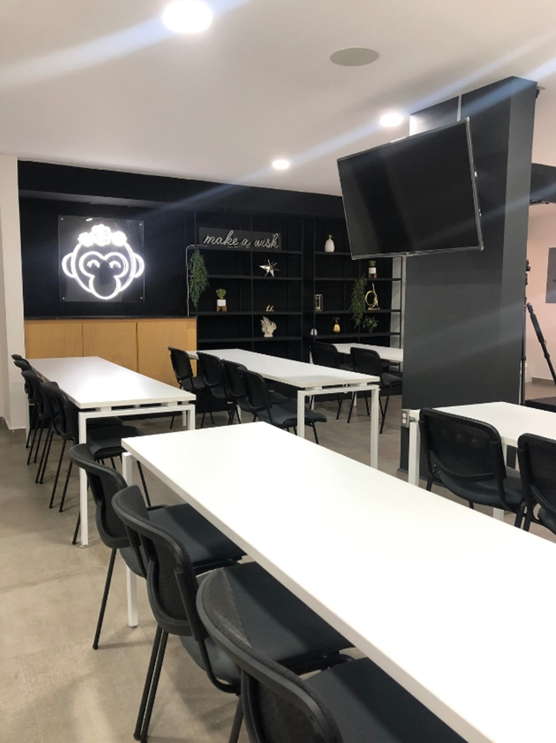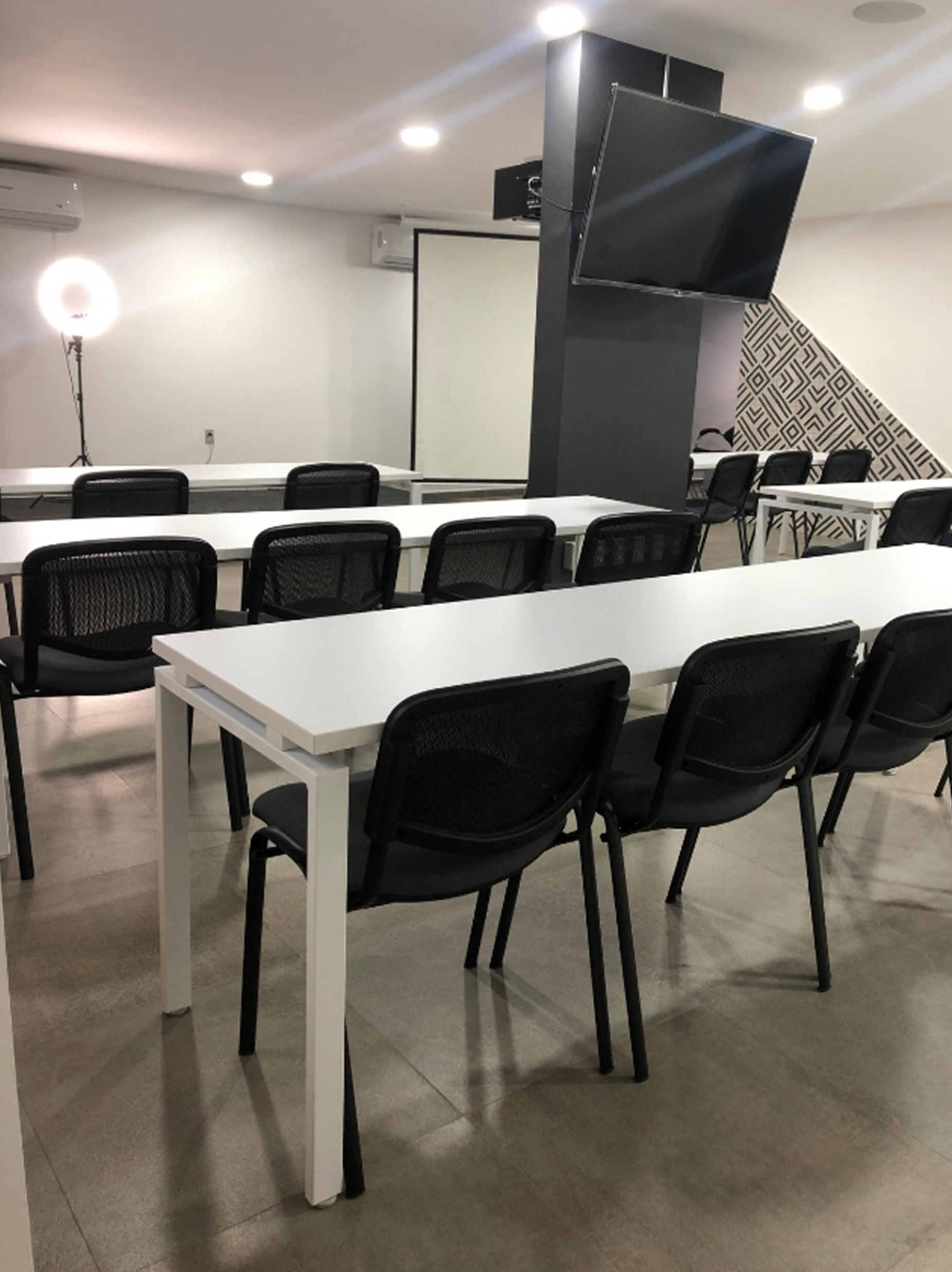 - Equipo audiovisual (TV 70" proyector inalámbrico,
